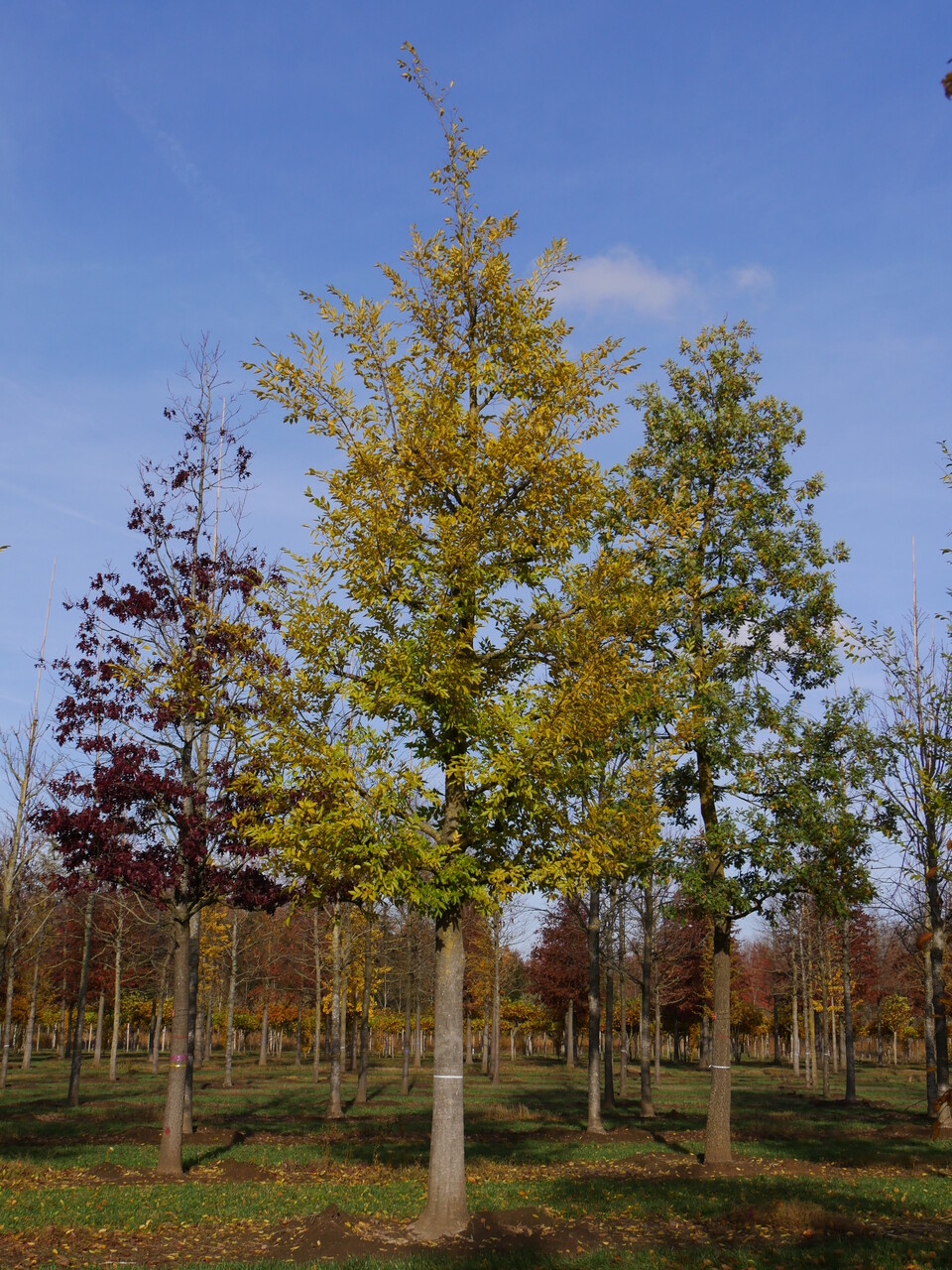Listy stromu Celtis julianae sa na jeseň sfarbia do žltá."