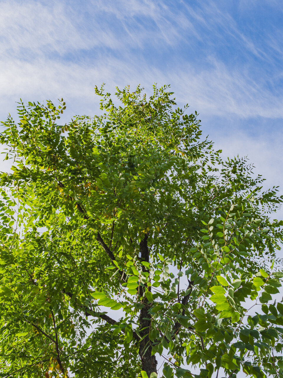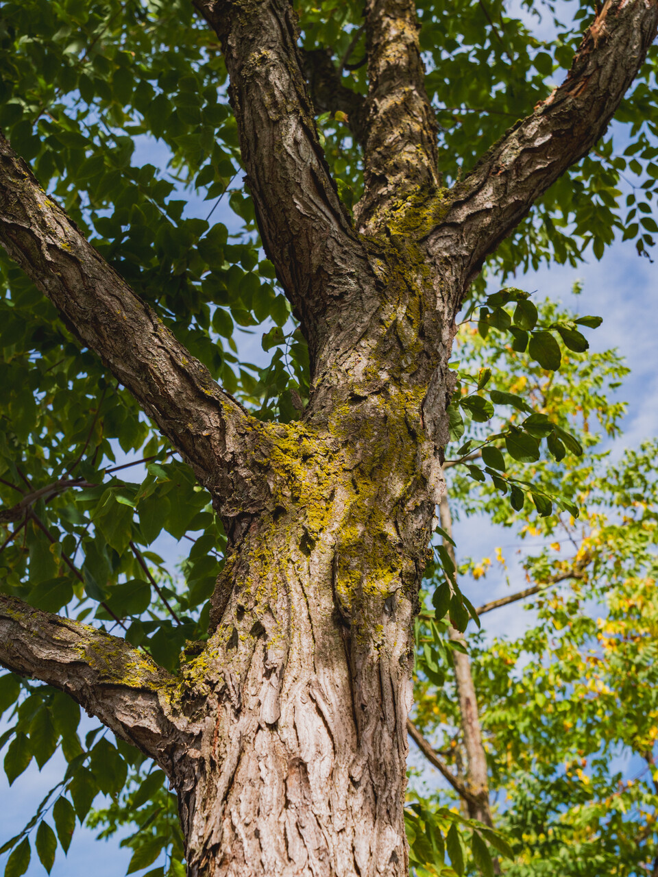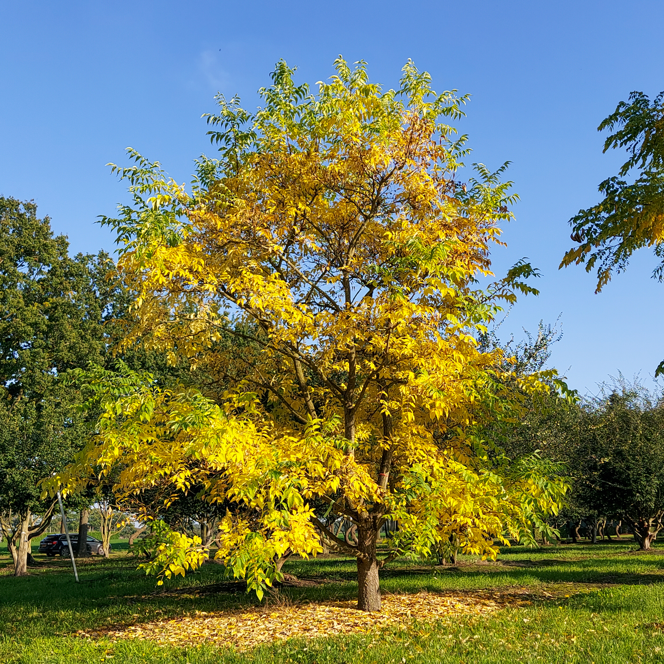 Listy stromu Gymnocladus dioica sa na jeseň sfarbia do žltá."