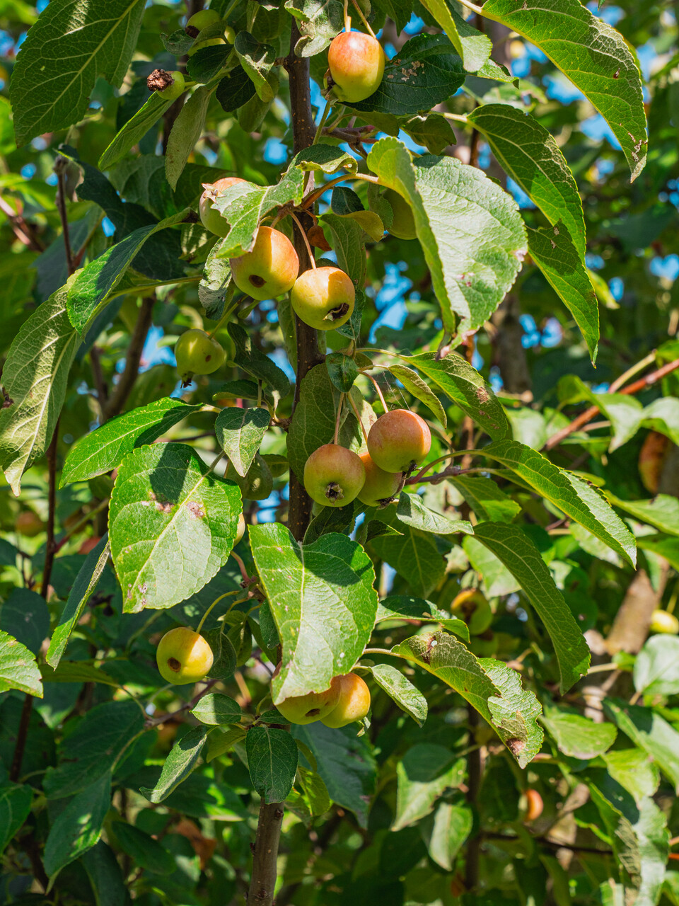 Listy stromu Malus 'Evereste' sa na jeseň sfarbia do žltá, oranžová."