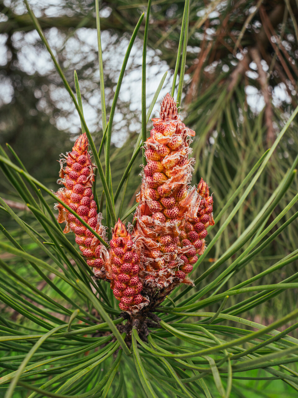 Veľký strom, ktorý vo svojom prirodzenom prostredí, predovšetkým v pobrežných oblastiach, rastie na suchých, piesočnatých pôdach. Výnimku tvorí Maroko, kde sa tento druh vyskytuje v horských oblastiach až do nadmorskej výšky 2000 m. Po stáročia bol intenzívne využívaný na spevňovanie dún a na produkciu terpentýnu. V dôsledku toho sa Pinus pinaster rozšíril vo voľnej prírode aj mimo svoje pôvodné stanovištia, napríklad do Južnej Afriky. Vytvára guľovitú, neskôr až vejárovitú korunu. Kôra starších jedincov je červenohnedá s tmavšími, hlbokými ryhami. Tuhé ihličie je pomerne dlhé, lesklo zelené a po celom obvode má stomatálne prúžky. Úzke šišky sú spočiatku purpurovo hnedé, po dozretí nadobúdajú svetlohnedý odtieň. Vzhľadom na citlivosť na mráz nie je táto borovica vhodná na rozsiahle výsadby v severozápadnej Európe, napriek tomu je však vhodná na pestovanie na terasách a vo veľkých átriách. Mimoriadne dobre toleruje morské vetry a je odolná voči znečisteniu ovzdušia.