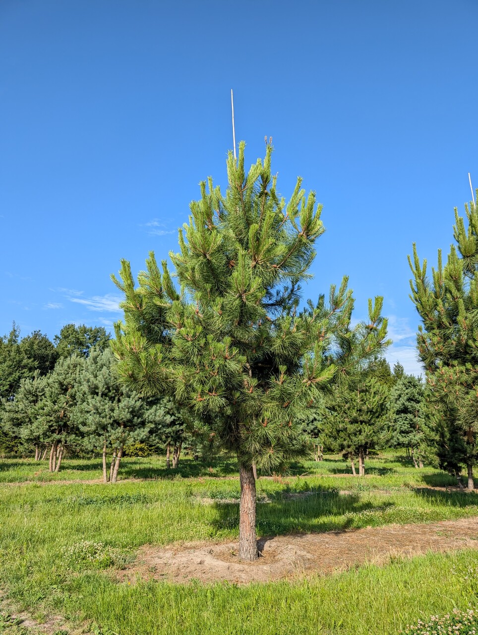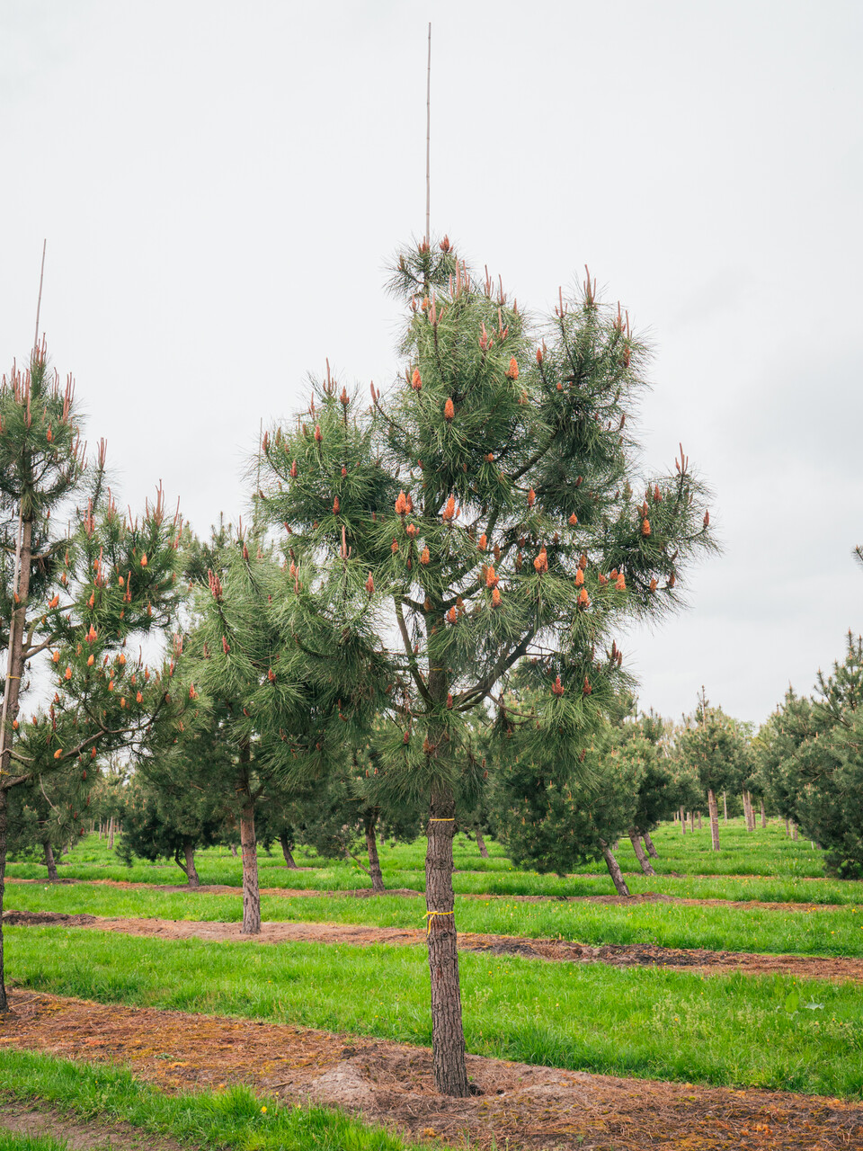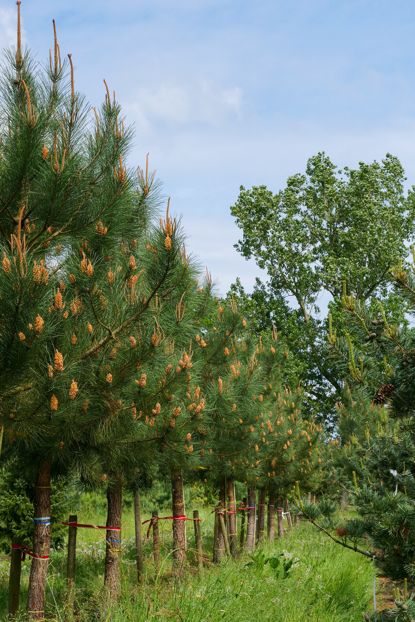 Správny čas na výsadbu stromu je mimo vegetačné obdobie. V strednej Európe môže byť Pinus pinaster so zemným balom vysadený od polovice novembra do konca apríla, avšak závisí to veľmi od klimatických podmienok a druhu stromu.