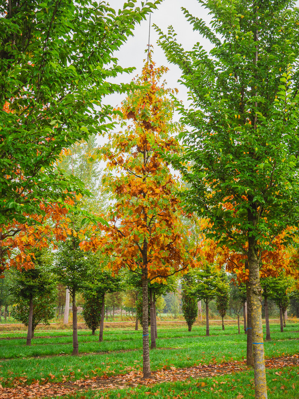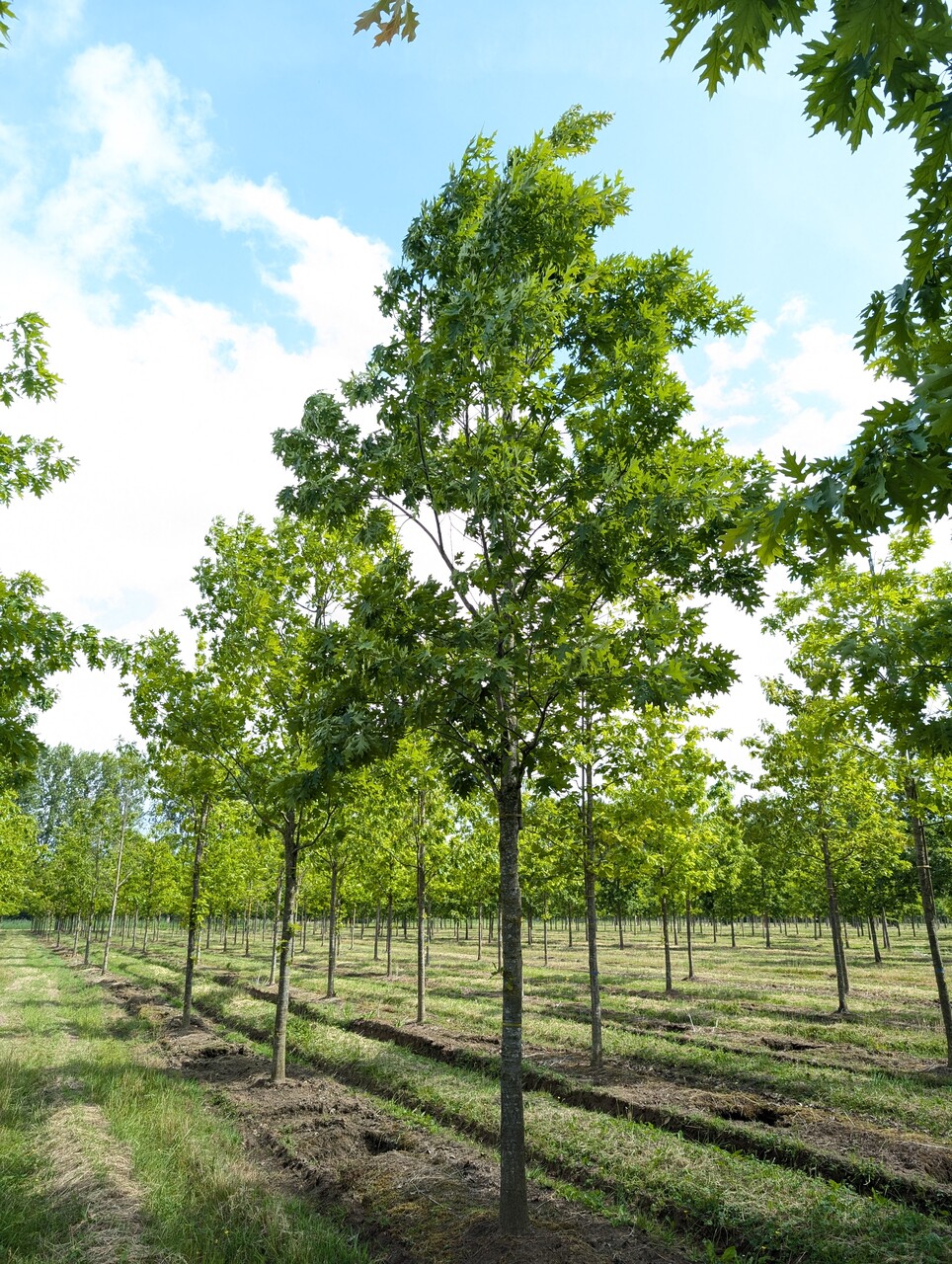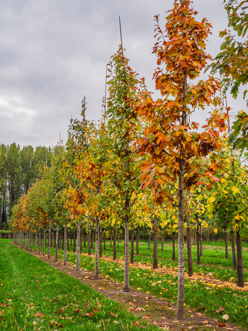 Správny čas na výsadbu stromu je mimo vegetačné obdobie. V strednej Európe môže byť Quercus rubra so zemným balom vysadený od polovice novembra do konca apríla, avšak závisí to veľmi od klimatických podmienok a druhu stromu.