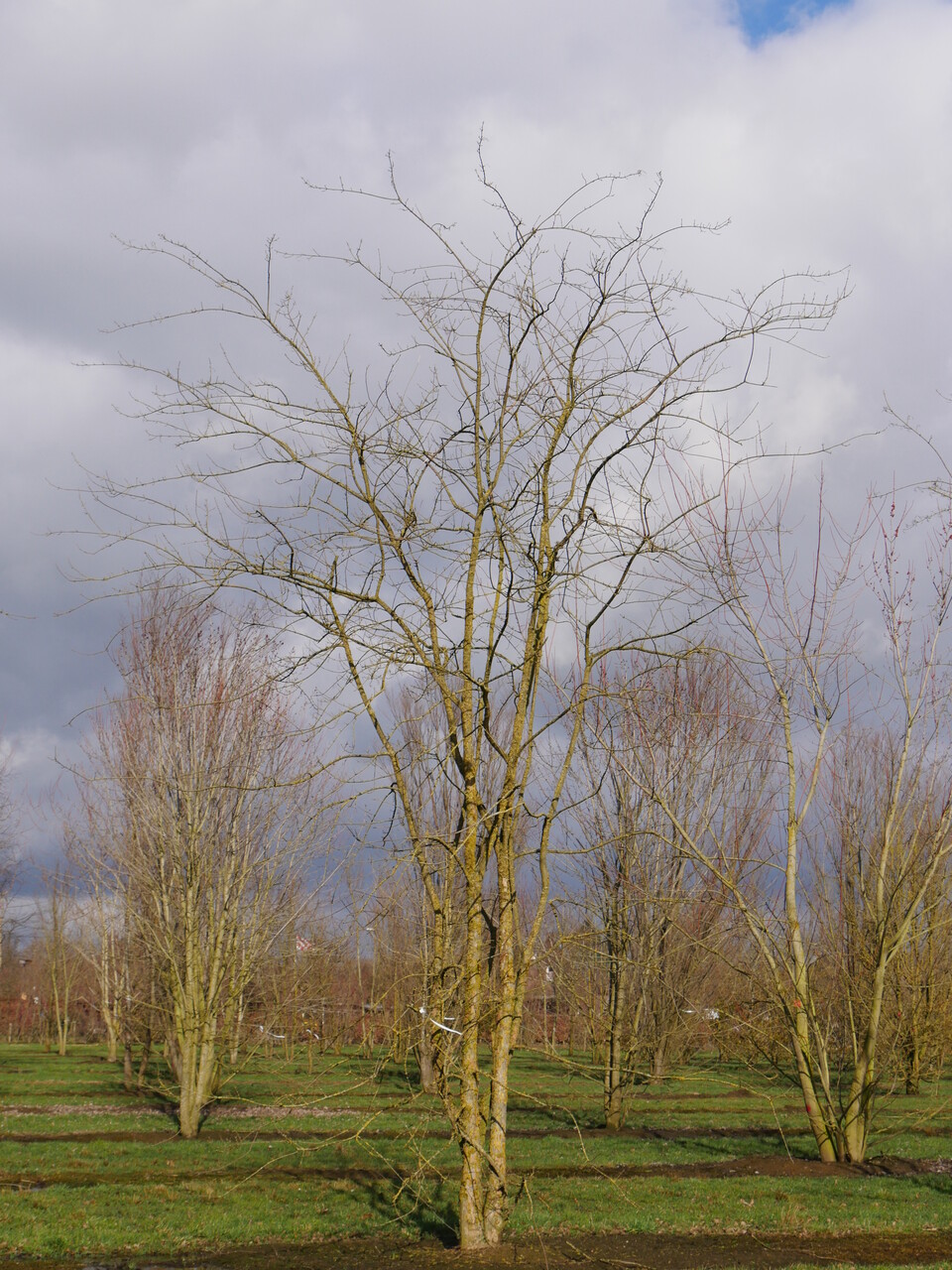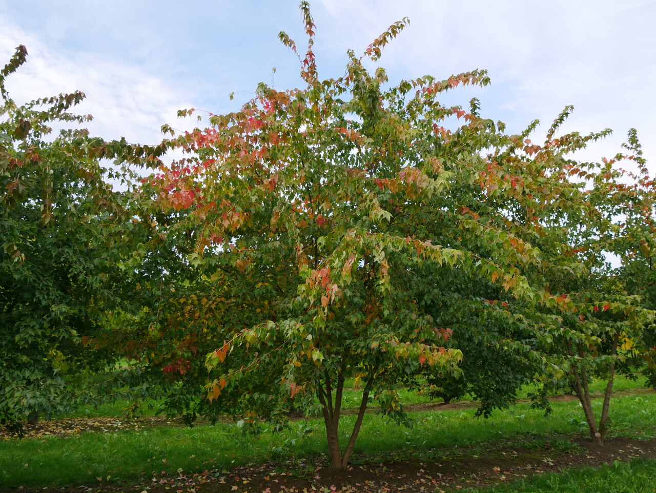 Small to medium size tree that can grow over twice as big in the wild as under cultivation. First has narrow, fan-shaped crown, soon developing to ovoid and later broad ovoid. The dark, grey-brown trunk sometimes has a slightly orange hue and can flake in strips as the tree matures. The leaf is somewhat variable but nearly always has three lobes pointing more or less forward. This is why A. Buergerianum is called the Trident maple. Sometimes used as a street tree, but its main use is as a park or solitary tree. The shiny, dark green leaf has a healthy appearance and can turn yellowish to deep orange-red in autumn. However, this varies from tree to tree and also depends on soil type and local climate conditions. Mature trees are reasonably drought-resistant.