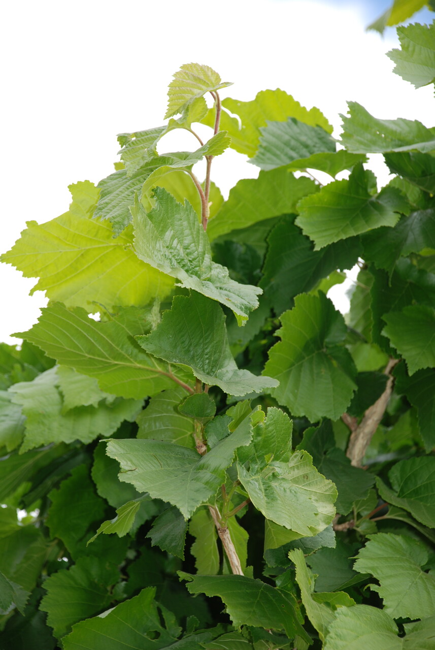 This selection was found in an existing group of trees at Schijndel (NL) by Mr P.C.M. van den Berk. The tree catches the attention by its slender pyramidal crown. As far as known it attains a height of circa 10 - 12 m. The trunk gets a ridged corky bark at an early stage. The branches also have a soft corky bark. The leaf is wide ovate to round-ovate with a double serrated margin and is woolly haired. The leaf base is strikingly cordate. The inflorescence is formed by male catkins that hang down gracefully and inconspicuous purple-red, female flowers. These appear well before the leaves. The tree gives very few nuts and has a deep going root system. Strong tree that is little susceptible to diseases and is well drought resistant. Hard surfaces are tolerated well too. May become a promising street tree.