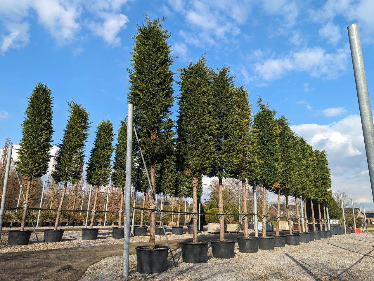 Správny čas na výsadbu stromu je mimo vegetačné obdobie. V strednej Európe môže byť × Cupressocyparis leylandii so zemným balom vysadený od polovice novembra do konca apríla, avšak závisí to veľmi od klimatických podmienok a druhu stromu.