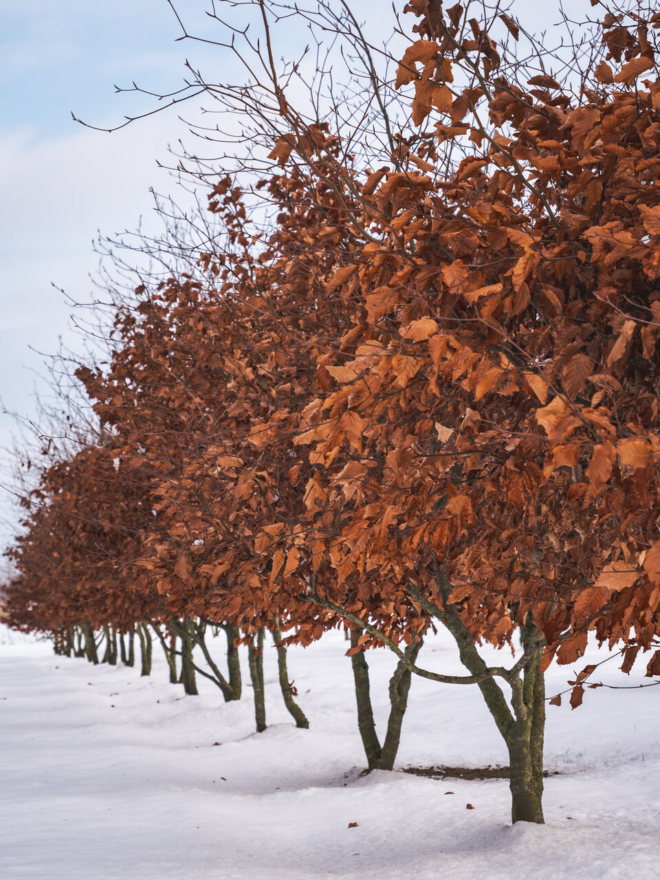 Listy stromu Fagus sylvatica sa na jeseň sfarbia do žltá."