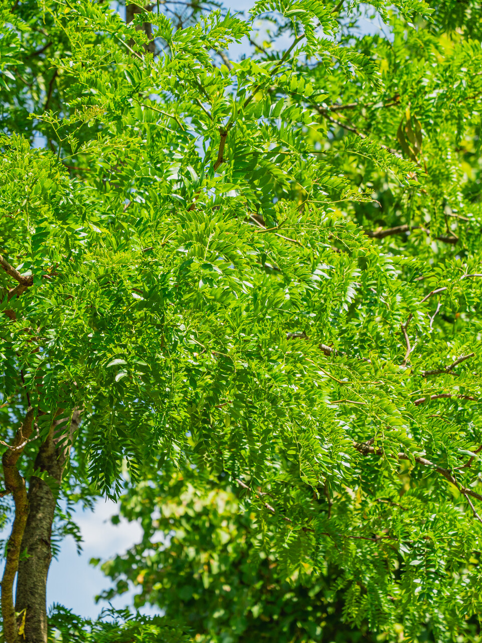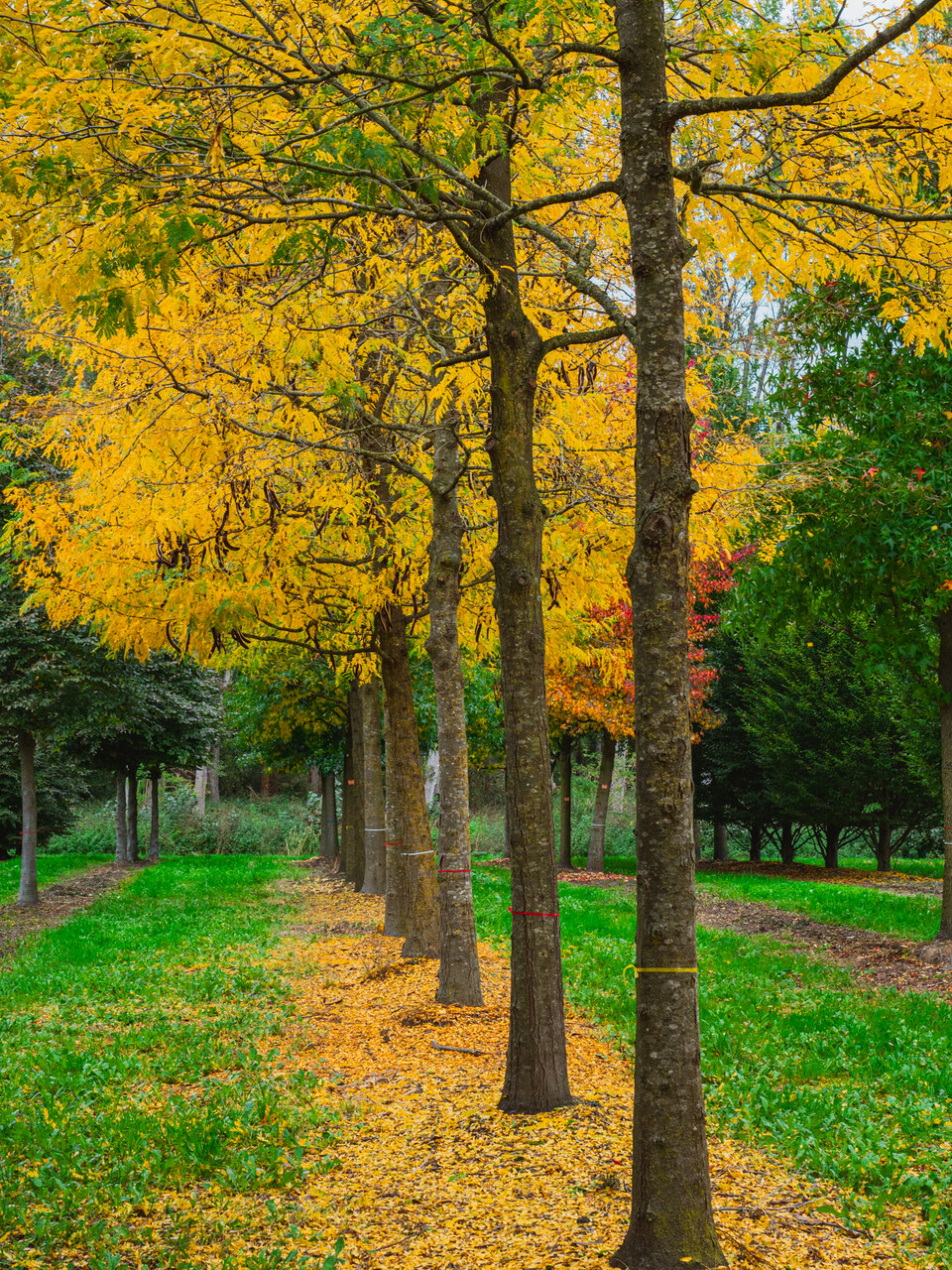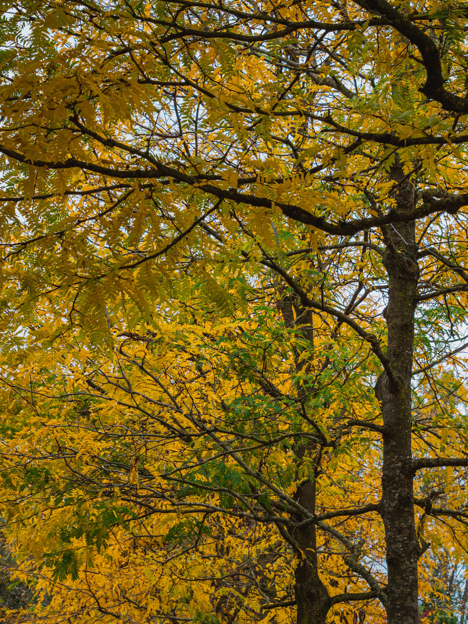 Listy stromu Gleditsia triacanthos f. inermis sa na jeseň sfarbia do žltá."