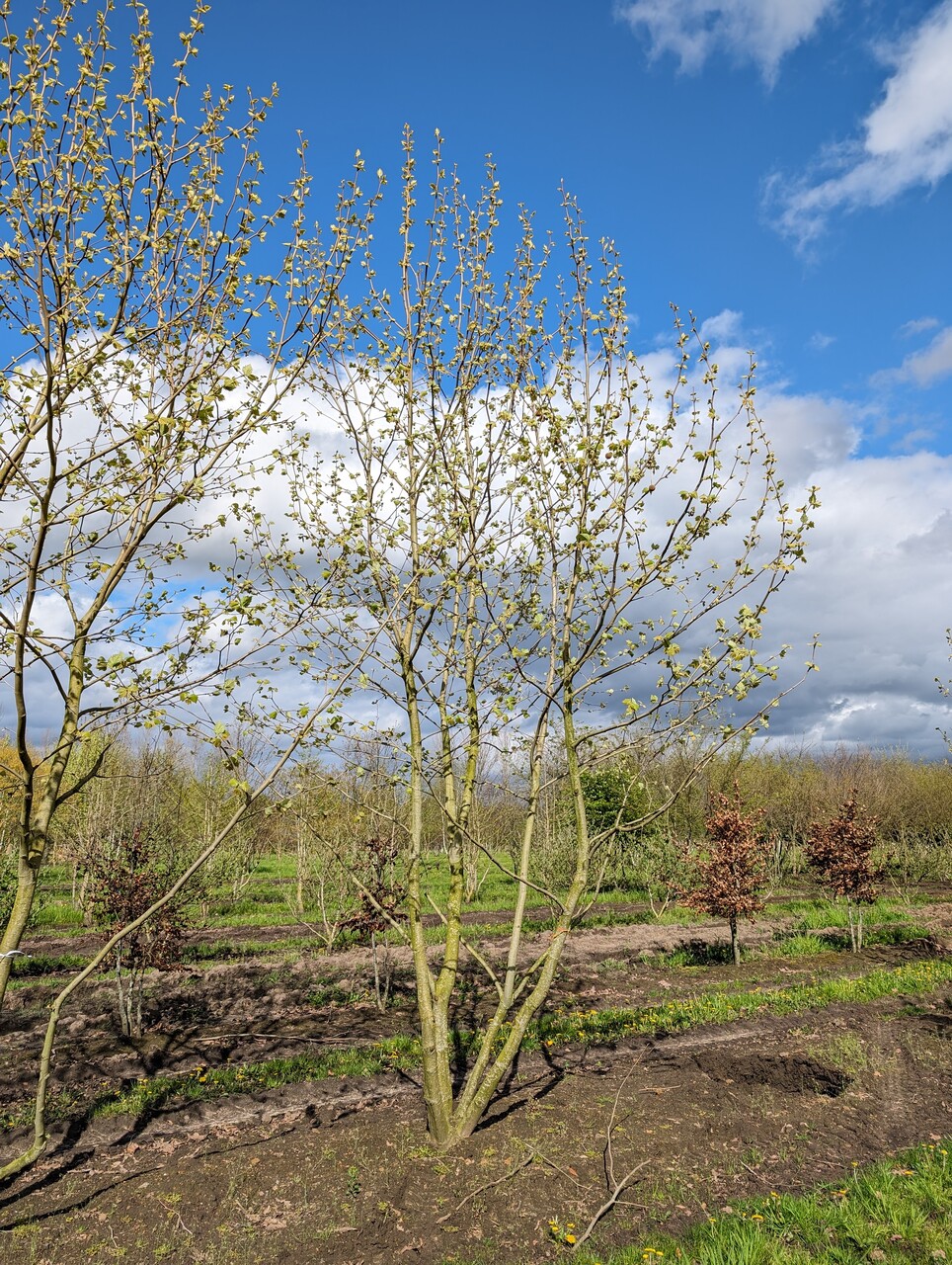 Správny čas na výsadbu stromu je mimo vegetačné obdobie. V strednej Európe môže byť Platanus ×hispanica so zemným balom vysadený od polovice novembra do konca apríla, avšak závisí to veľmi od klimatických podmienok a druhu stromu.