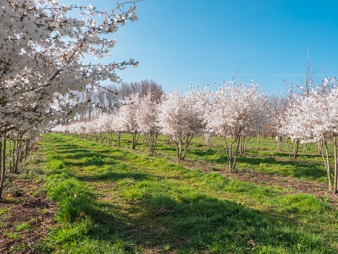 Správny čas na výsadbu stromu je mimo vegetačné obdobie. V strednej Európe môže byť Prunus 'The Bride' so zemným balom vysadený od polovice novembra do konca apríla, avšak závisí to veľmi od klimatických podmienok a druhu stromu.