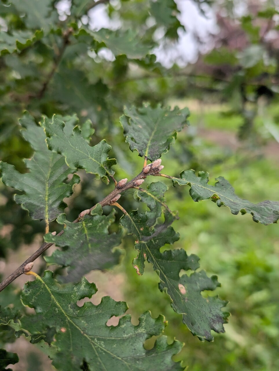 Quercus pubescens – dub pýřitý sa prirodzene vyskytuje v teplých, slnečných oblastiach na vlhkých vápencových svahoch, kde môže dorásť do výšky až 20 metrov. V kultúre, kde sa Q. pubescens zvyčajne štepí na Q. robur, zostáva menší. Kôra kmeňa je sivá, s hlbokými korkovitými ryhami. Púčiky a mladé výhonky sú pokryté jemnými, plstnatými chĺpkami. Listy majú rôznorodý tvar, od obvejčitých po eliptické, s dĺžkou 5 až 10 cm a šírkou 3 až 5 cm. Spodná strana listovej čepele je rovnako pokrytá mäkkými chĺpkami. Listy sú nepravidelné, väčšinou s plytkými lalokmi, ktoré môžu byť buď tupo zaoblené, alebo špicaté. Listy sú síce podobné listom duba letného (Q. robur), ale zostávajú výrazne menšie. Žalude sa zoskupujú po dvoch až štyroch a sú do polovice zakryté škrupinou, ktorá je pokrytá priliehavými šupinkami s plstnatými chĺpkami.