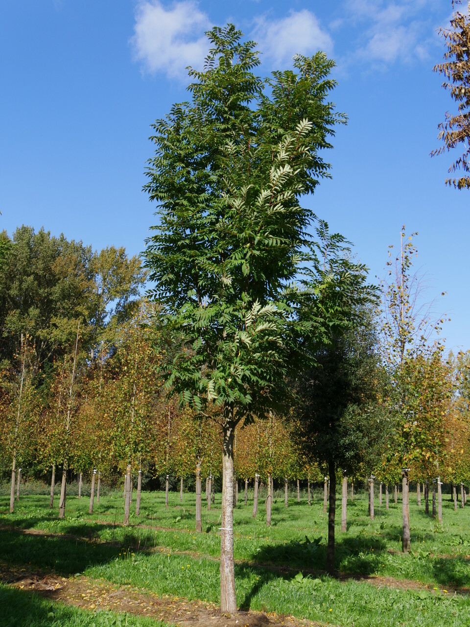 Tento pozoruhodný stredne veľký strom dorastá do výšky 10 až 15 metrov. V mladosti rastie štíhlo nahor a vytvára stĺpovitú korunu, ktorá sa neskôr rozširuje. Mladé výhonky sú medené, sfarbené a plstnaté. Kôra dospelého stromu je šedohnedá, neskôr sa objavia pozdĺžne trhliny. Pri poškodení kôry, konárov či listov sa šíri nepríjemný zápach. Veľký, nepárnoperovitý list sa skladá z 20 až 26 listových segmentov, ktoré sa tvarovo nelíšia od pôvodného druhu. Pri rašení sú intenzívne oranžovo-ružové, postupne sa menia na zelenožlté a napokon na lesklé, svetlozelené. Na jeseň sa list sfarbuje do žlta. Drobné kvety, ktoré taktiež nepríjemne voňajú, sa objavujú vo veľkých metlinách. Po odkvitnutí sa tvoria drevnaté tobolky obsahujúce krídlaté semená. Kvitnutie a tvorba plodov nastávajú len počas horúcich letných období. Ide o výnimočný parkový strom vhodný ako solitér.