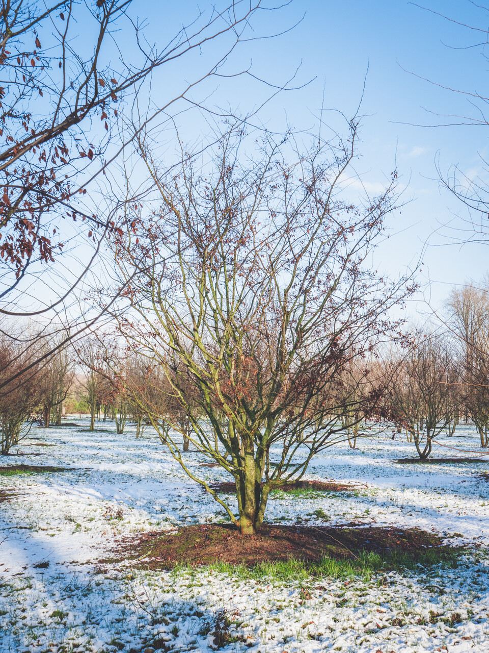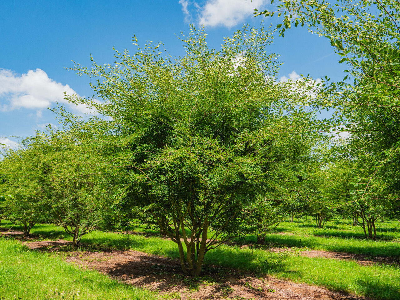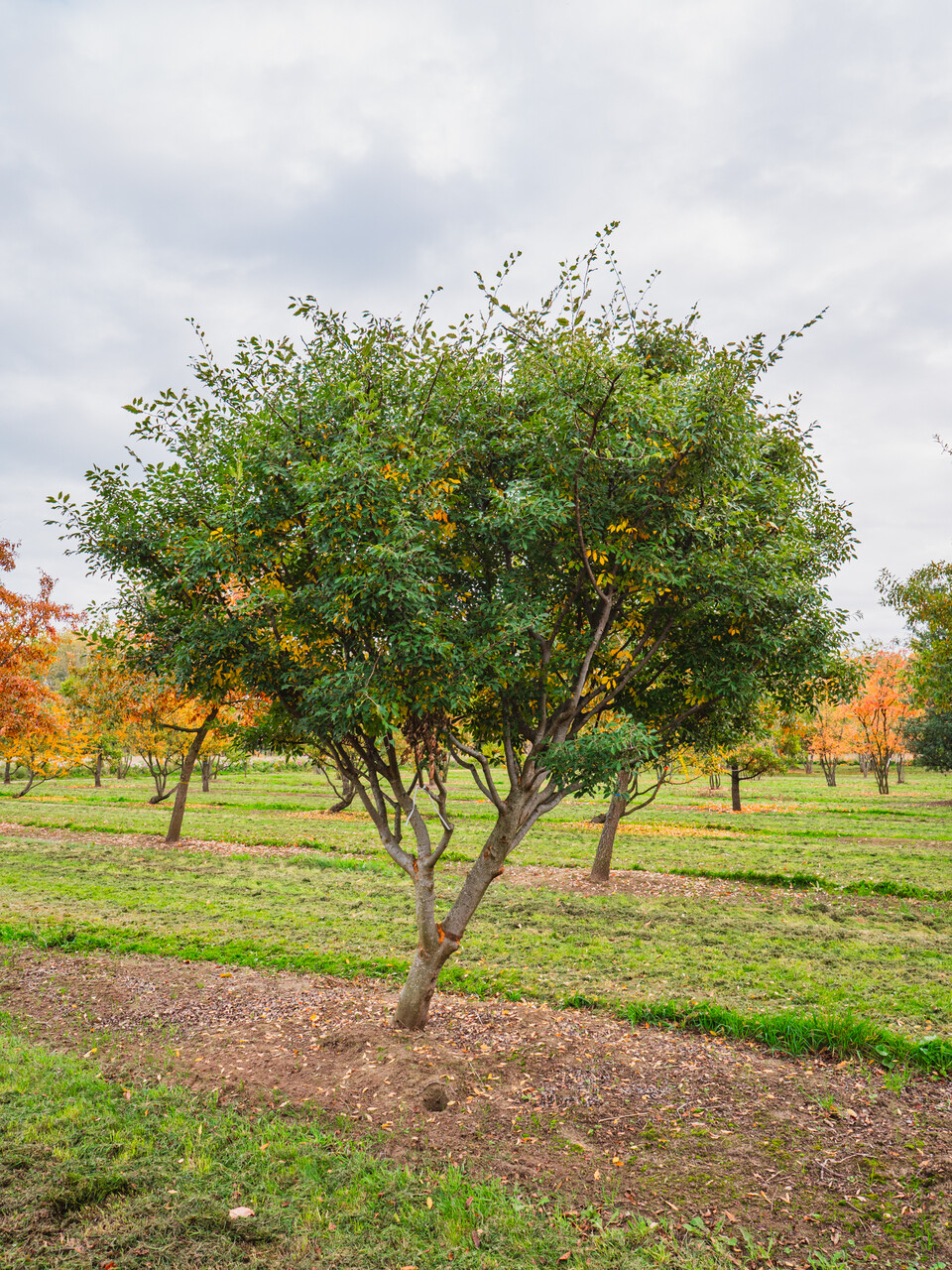 Medium-size tree that at first sight resembles Z. carpinifolia, but is significantly smaller. The wide vase-shaped crown grows to 6 - 12 m height and spread. The branching is less ascending but naturally starts quite low. The young twigs are quite thin, brown and slightly hairy. The mature bark is grey rarely exfoliates in small plates. The slightly crooked, ovate to elliptical leaf is dark green and has the same hair as Z. carpinifolia. The leaf margin, however is significantly more deeply serrated. The blossom, fruits and autumn colour are as the species. A medium-size park tree with a graceful crown shape that was originally described as a separate species but is now assumed to be a selection of Z. carpinifolia. Material gathered from the wild has never been kept which means this is not likely to be a wild species.